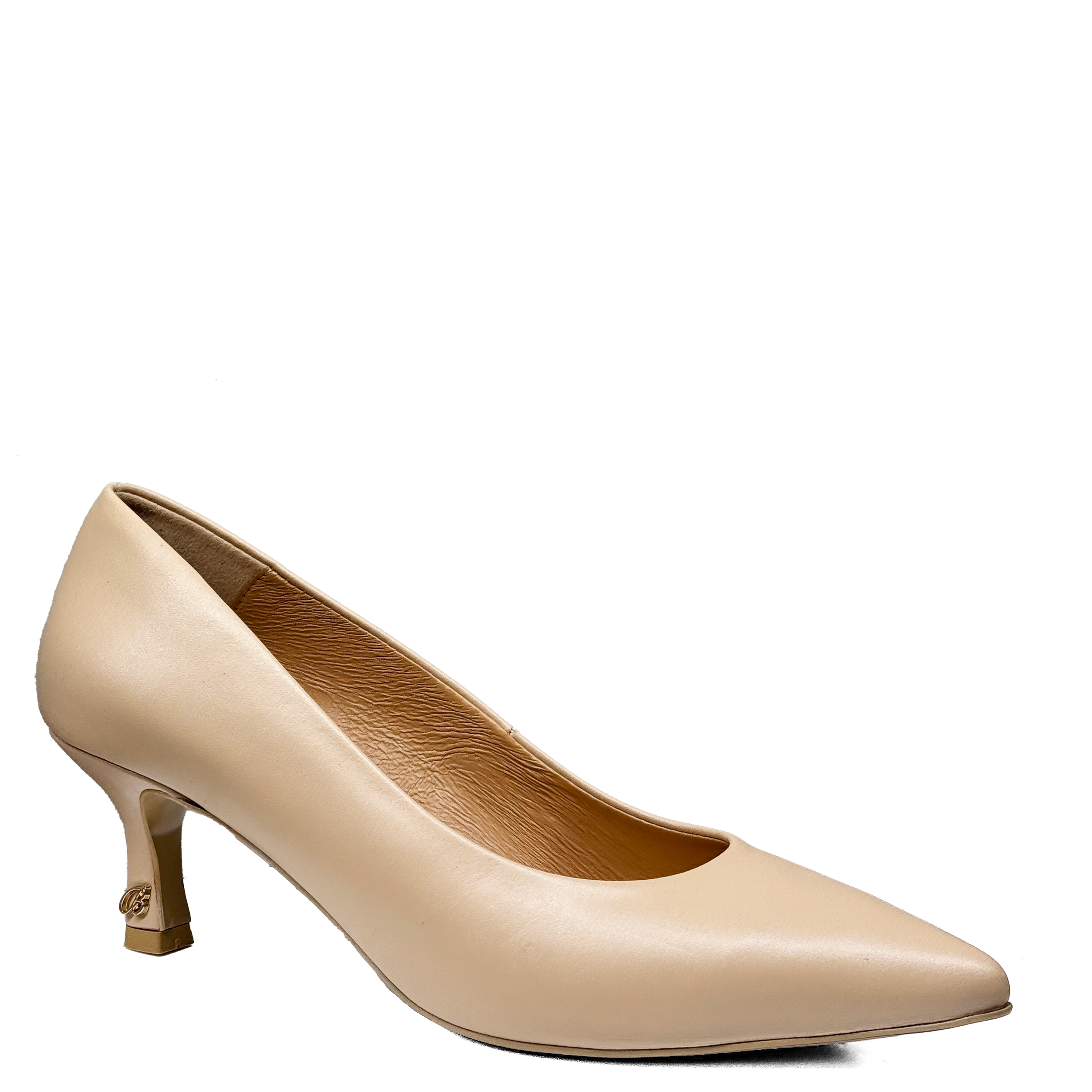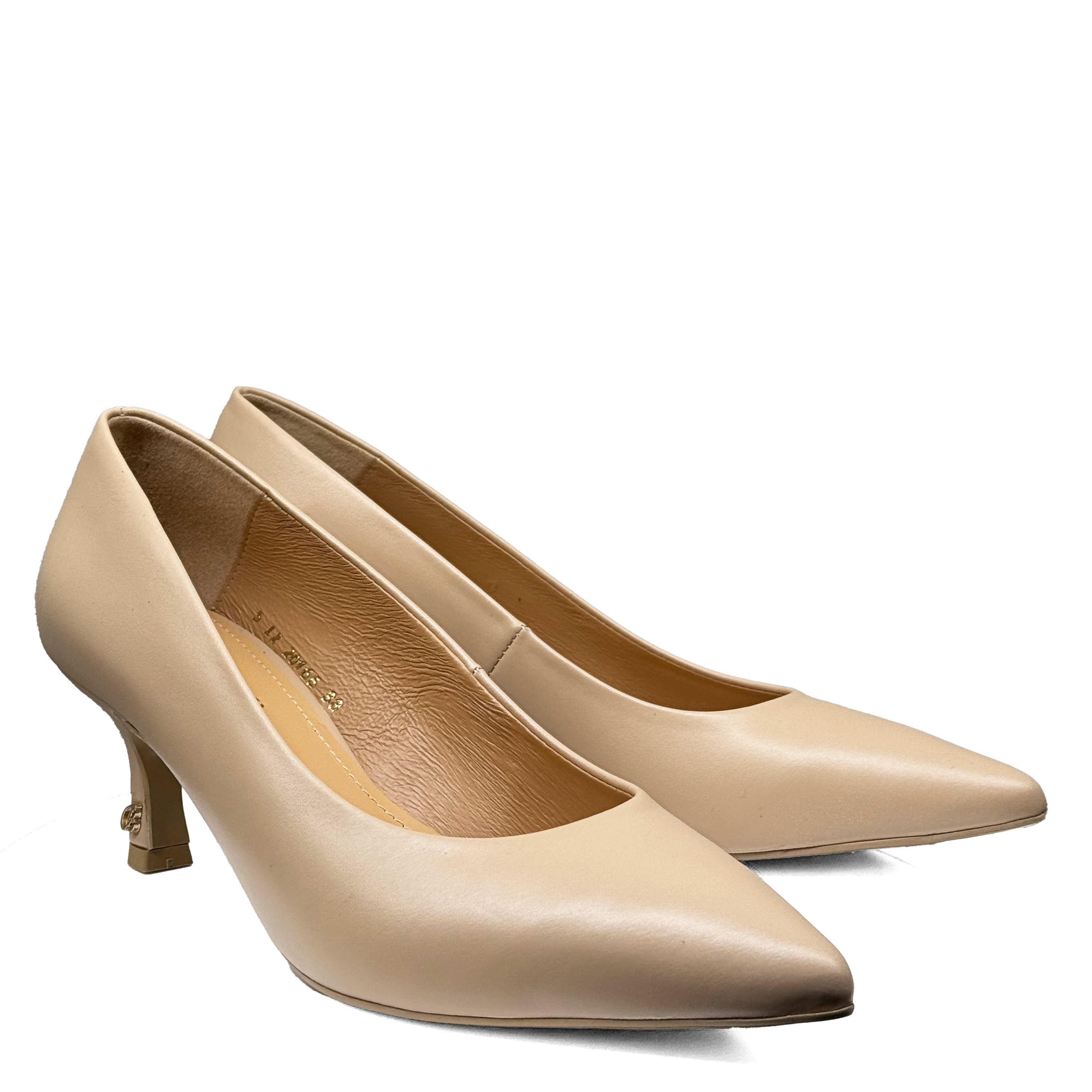 Beżowe skórzane szpilki na niskim obcasie kaczuszka Baldaccini 20165-102