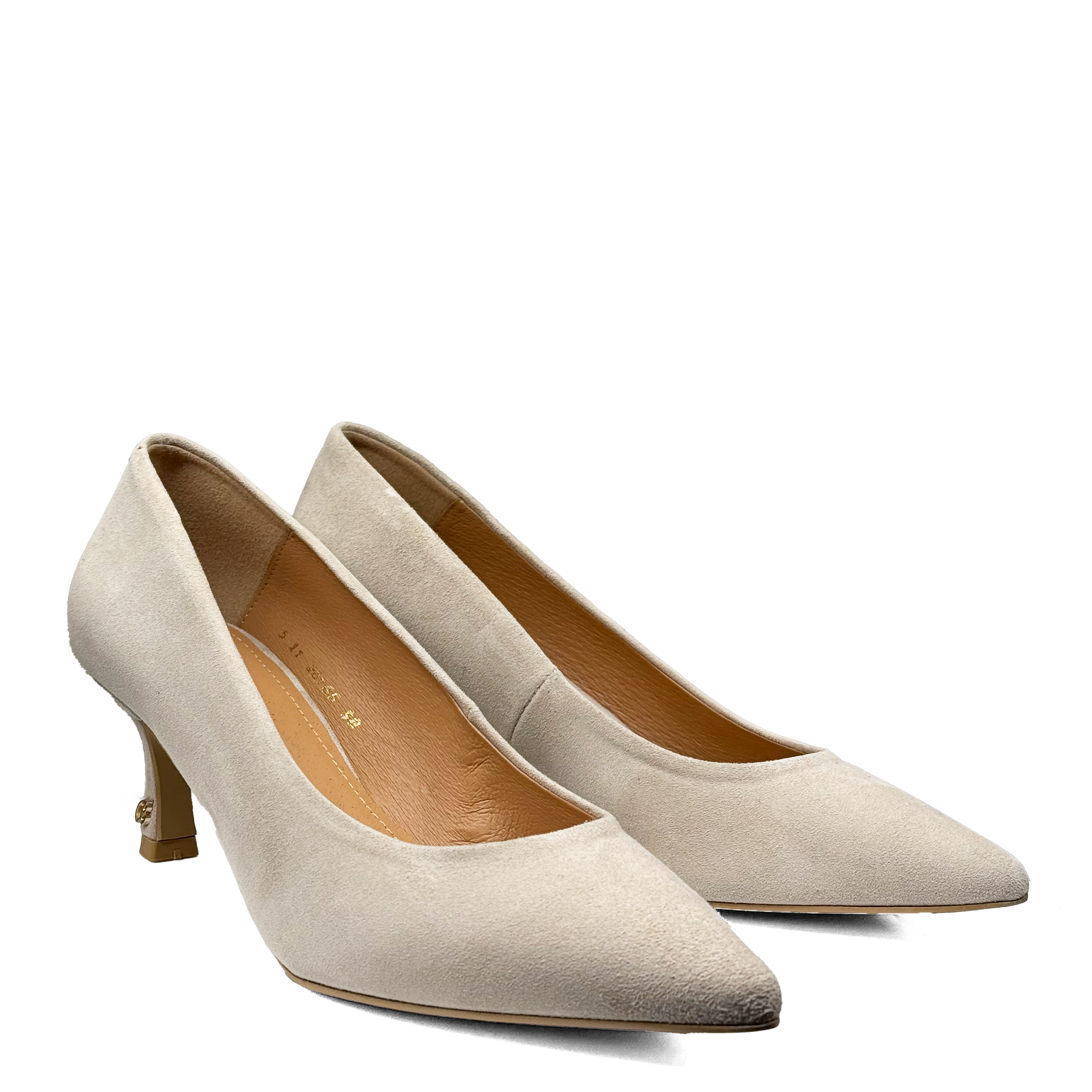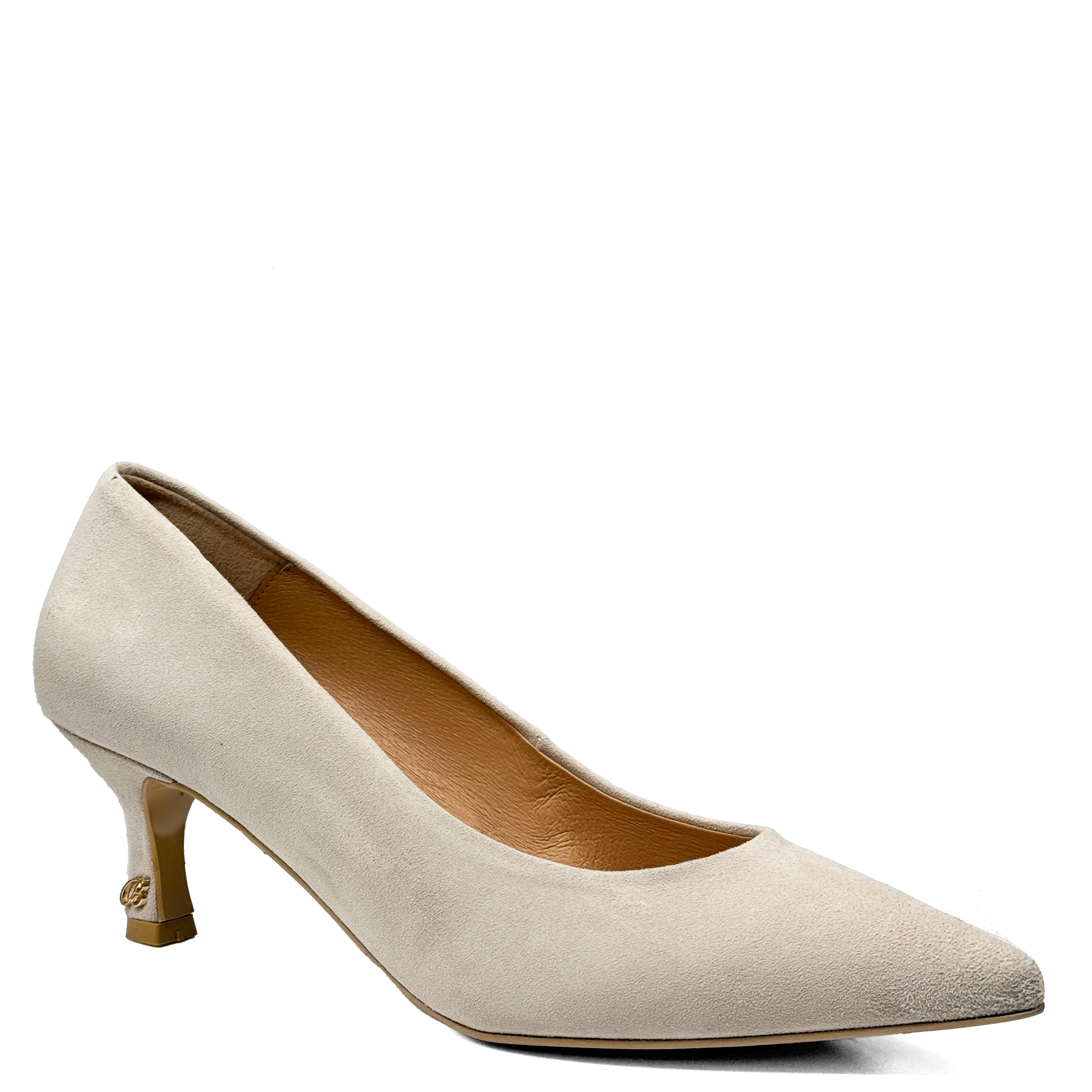 Beżowe zamszowe szpilki na niskim obcasie kaczuszka Baldaccini 20165-89