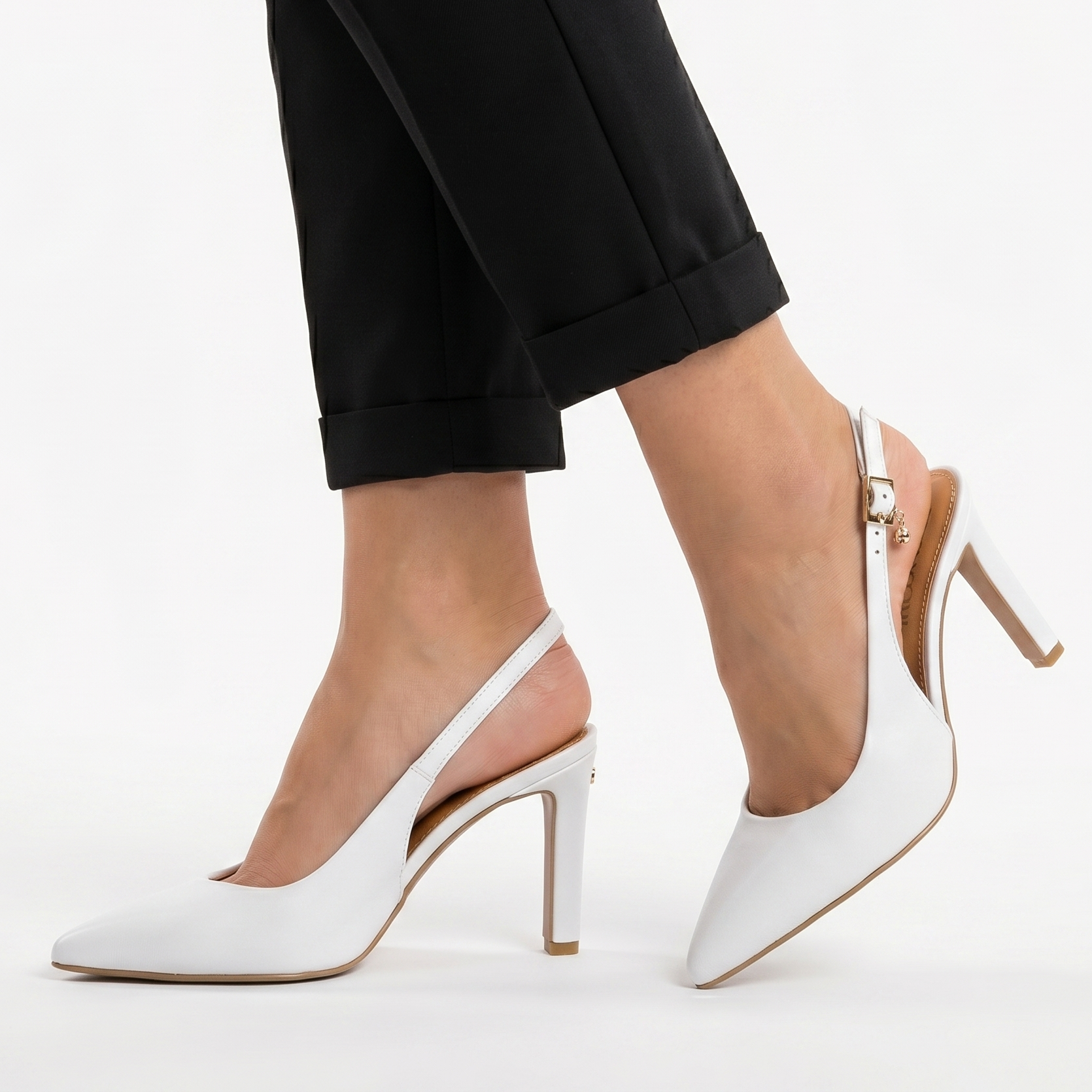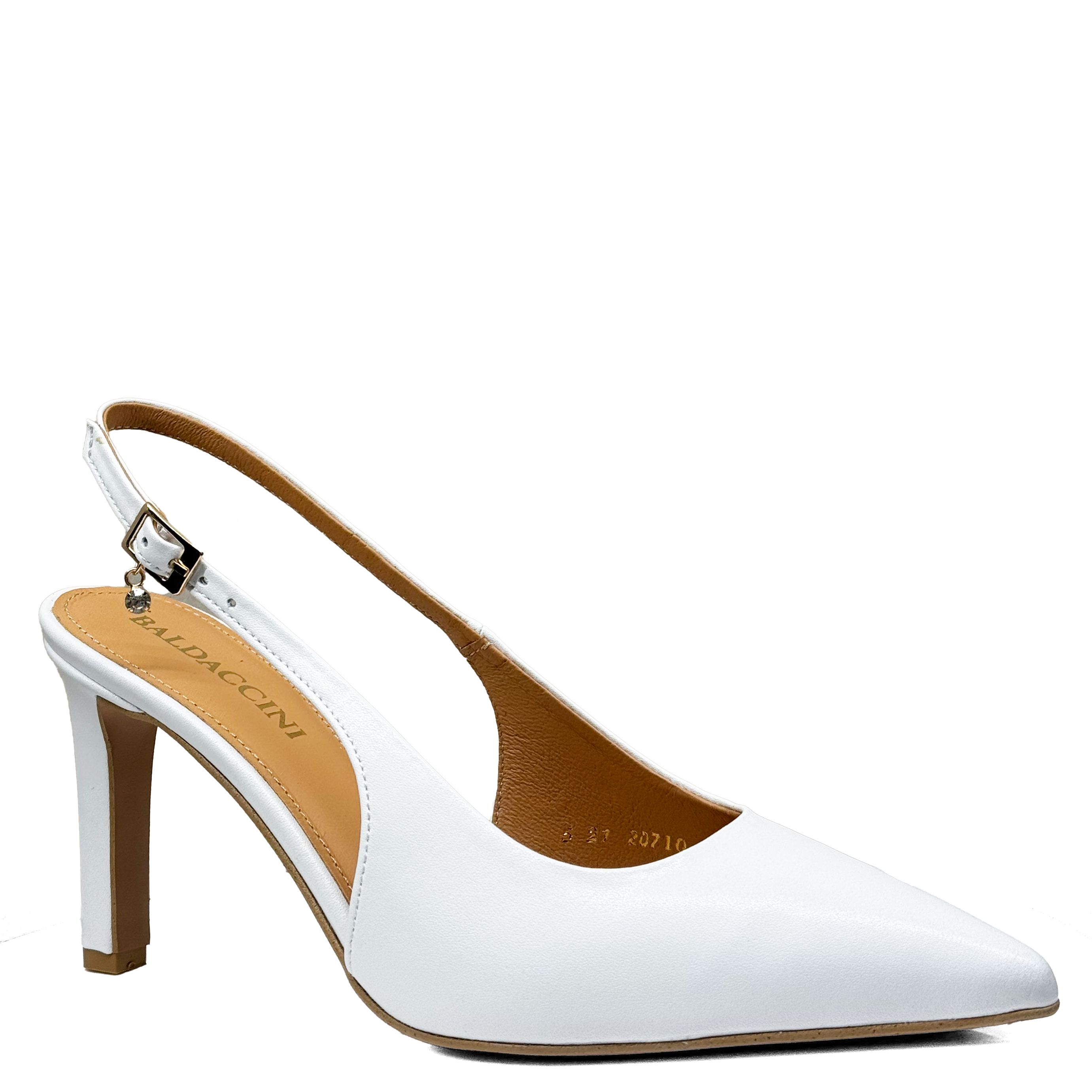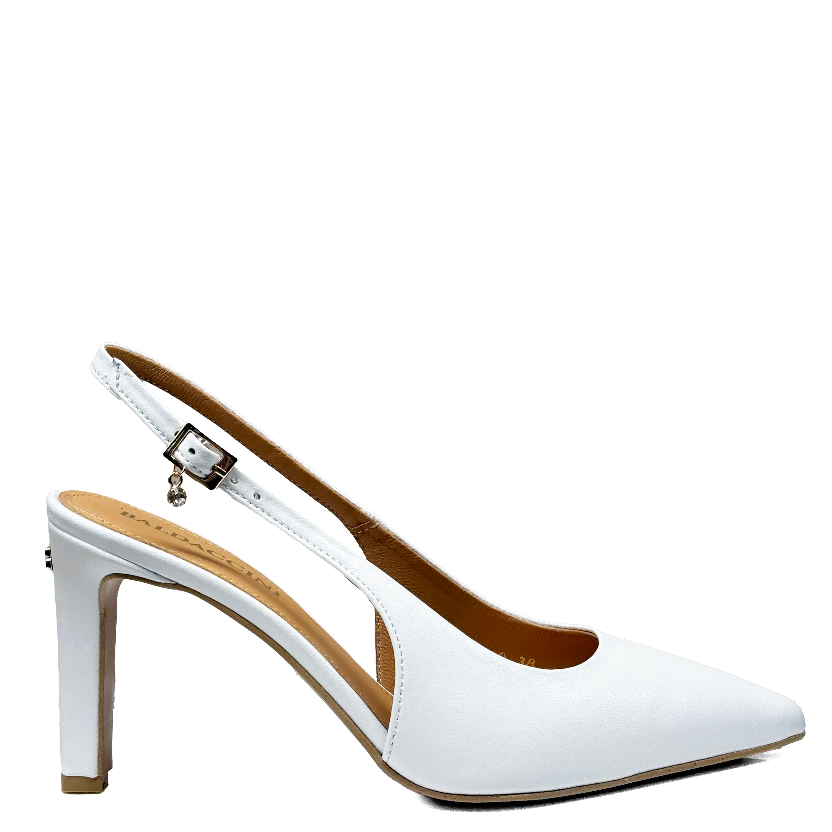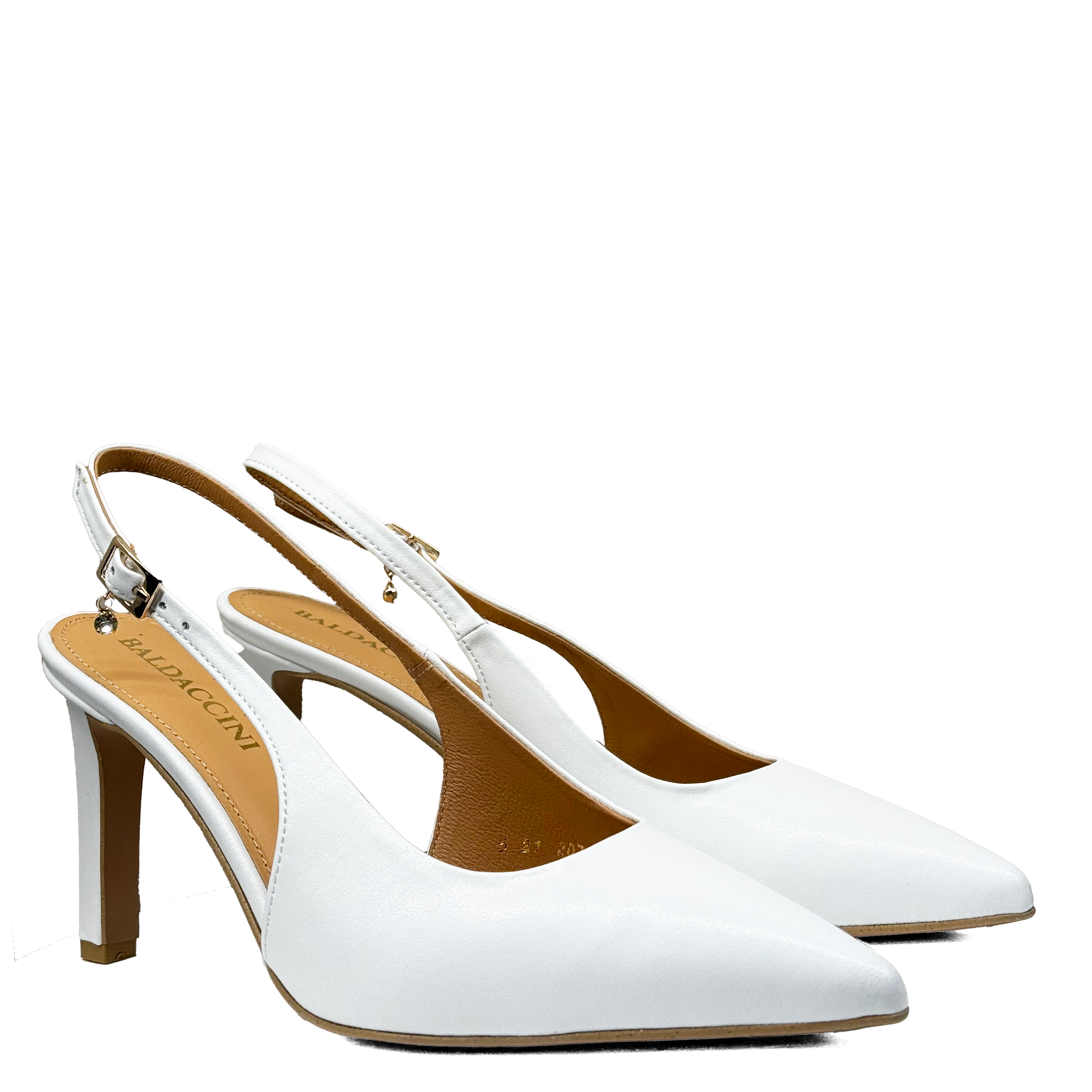 Białe skórzane czółenka z odkrytą piętą Baldaccini 20710 -62 śnieżna biel