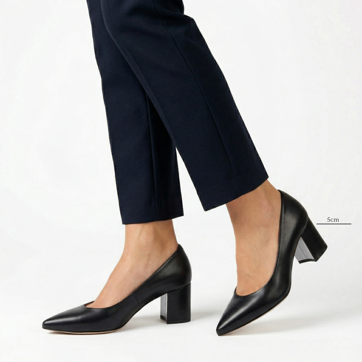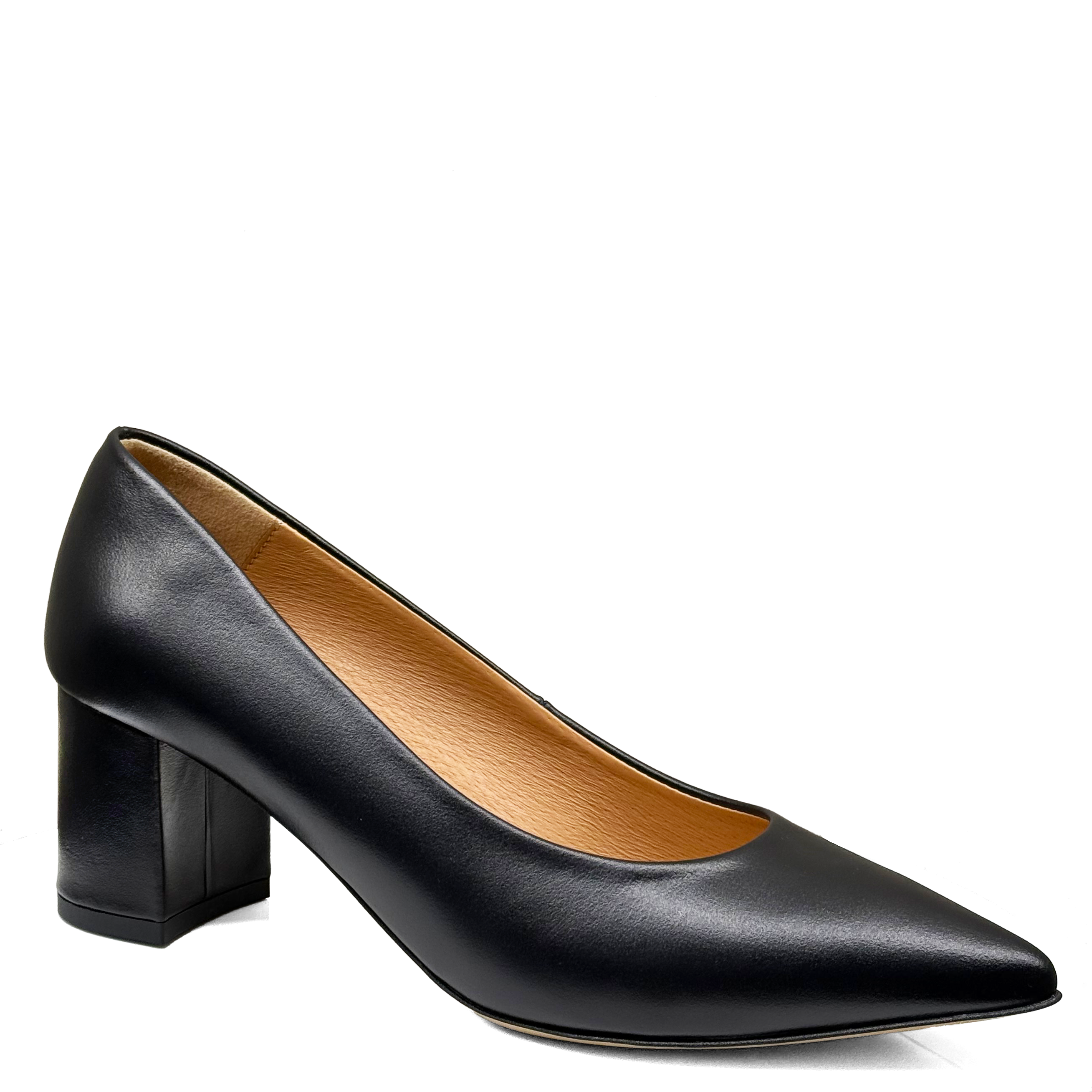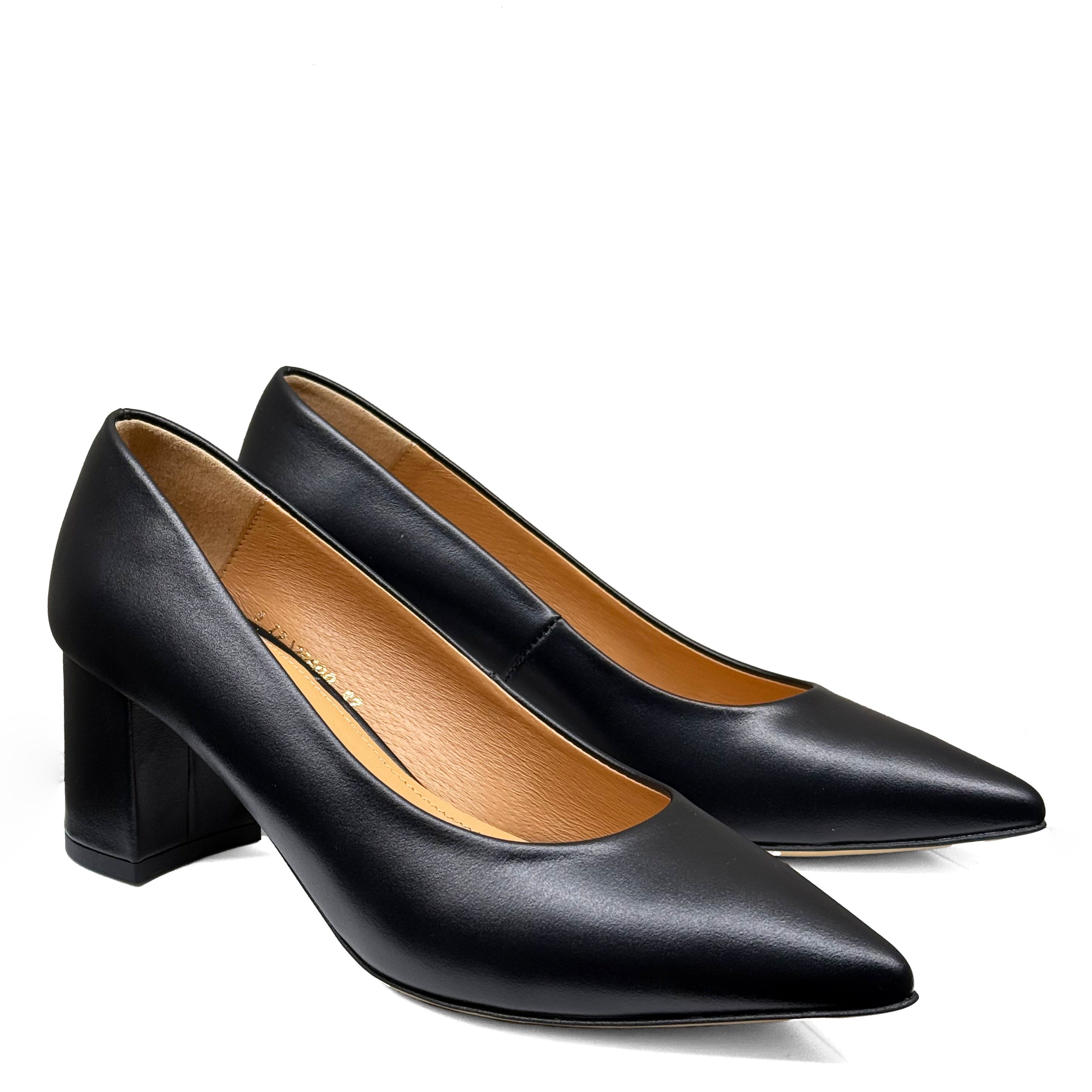 Czarne skórzane czółenka na niskim słupku Baldaccini 20690
