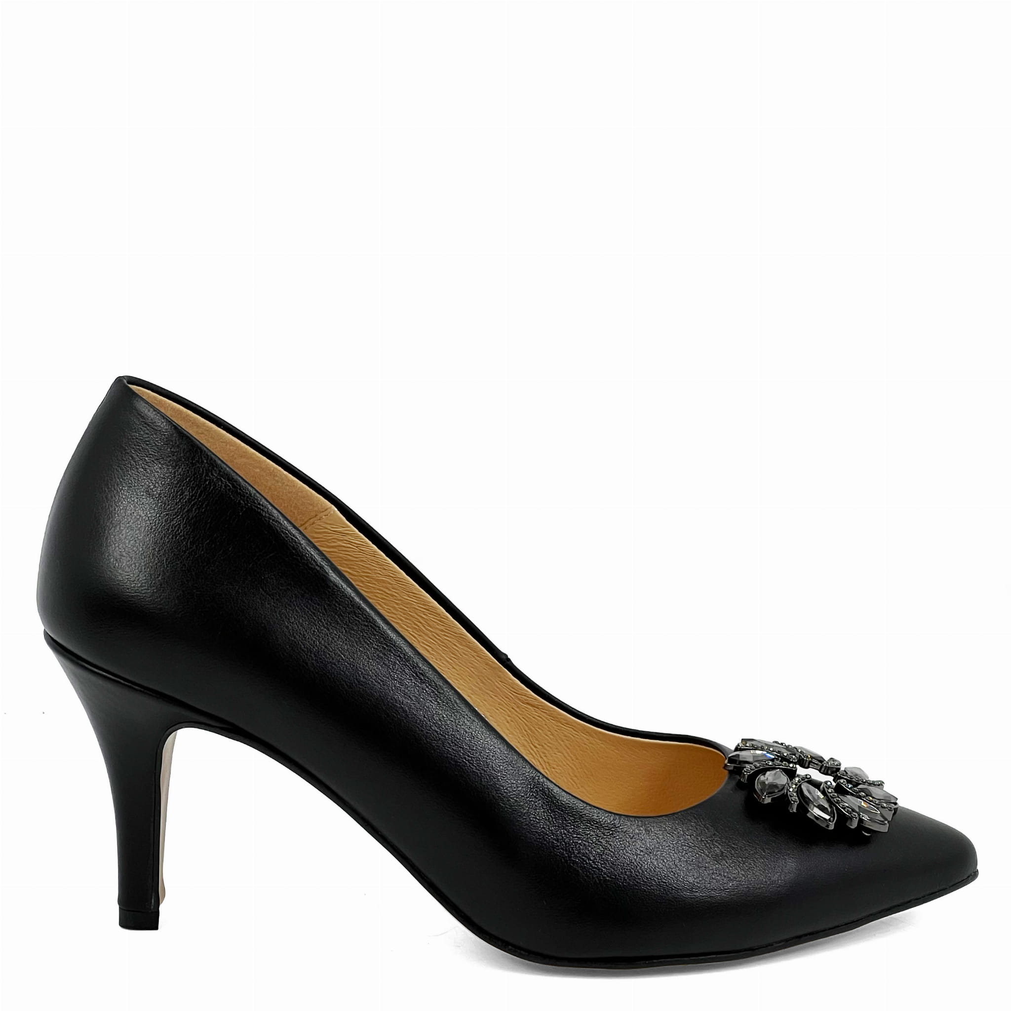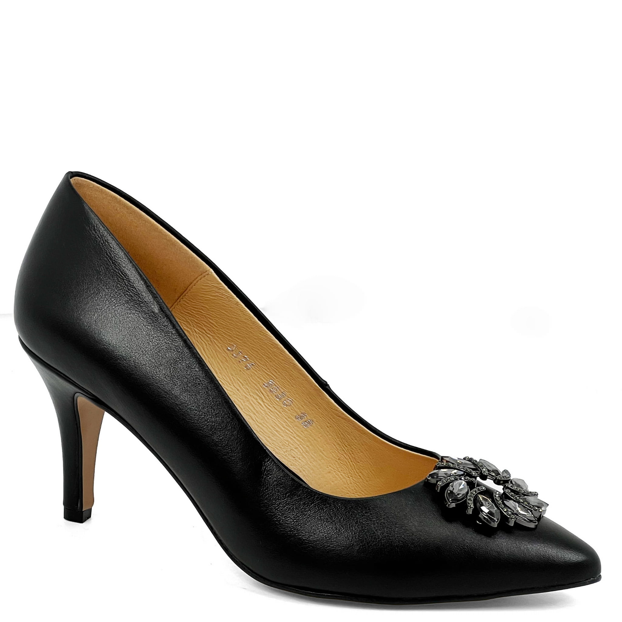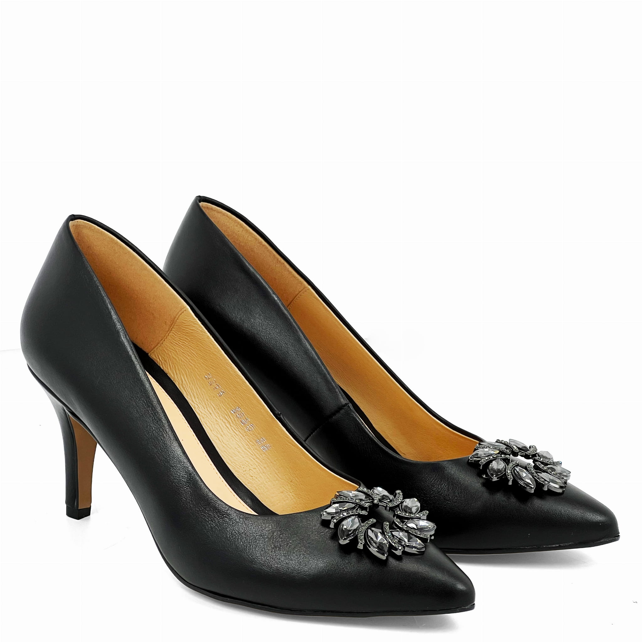 Czarne skórzane szpilki na niskim obcasie 9030-72