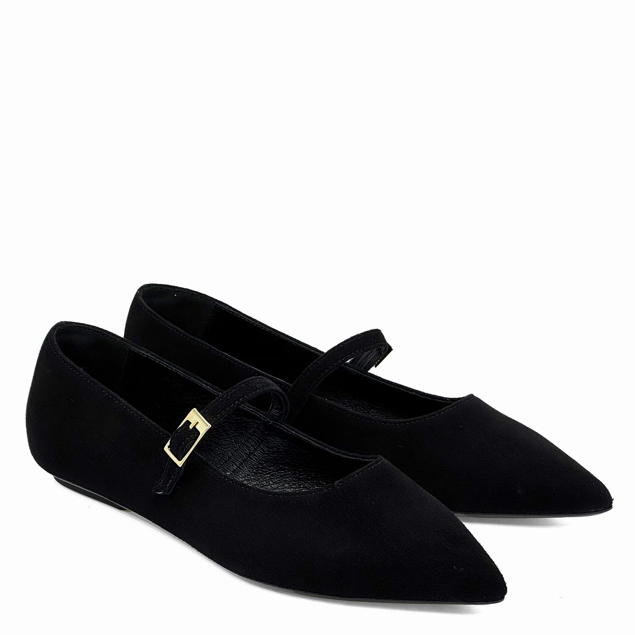 Czarne zamszowe baleriny w szpic Baldaccini 20320
