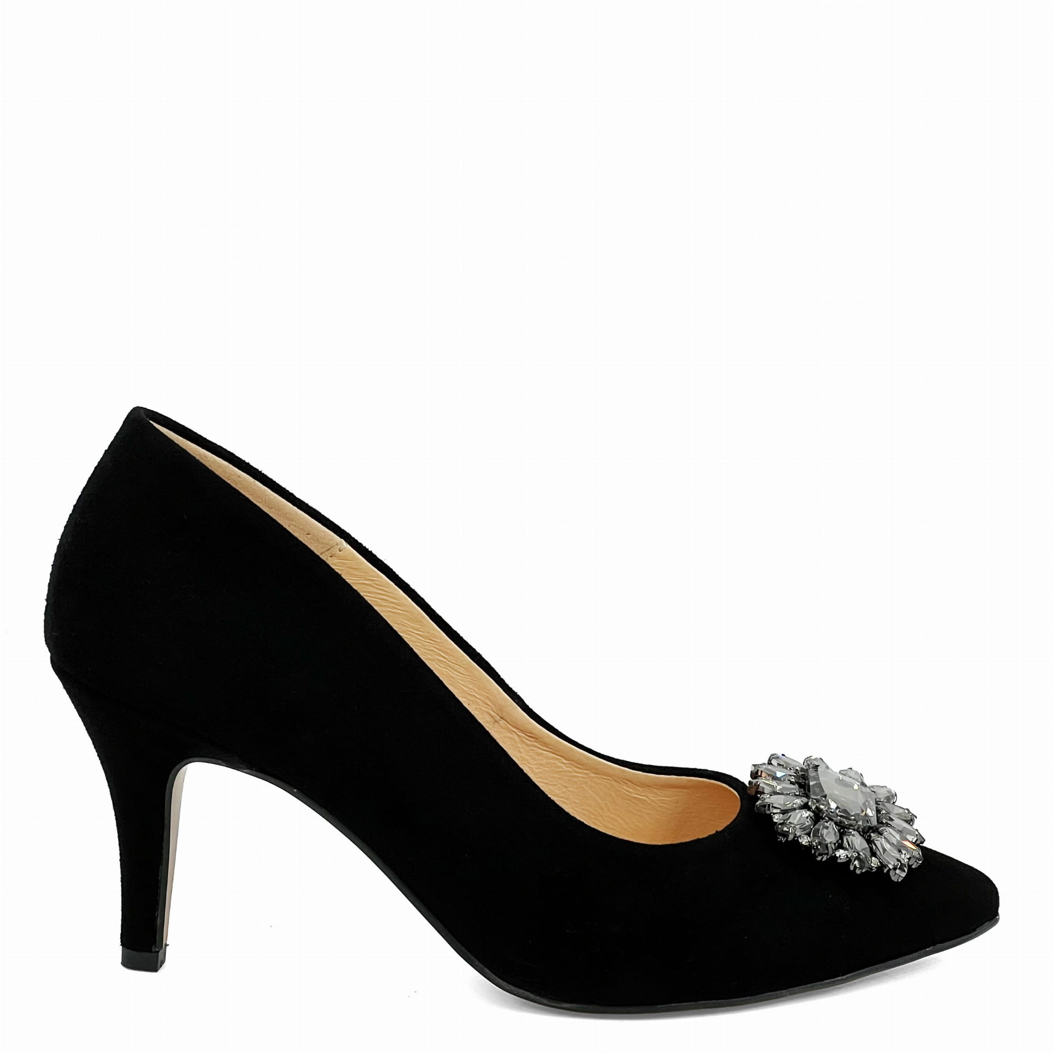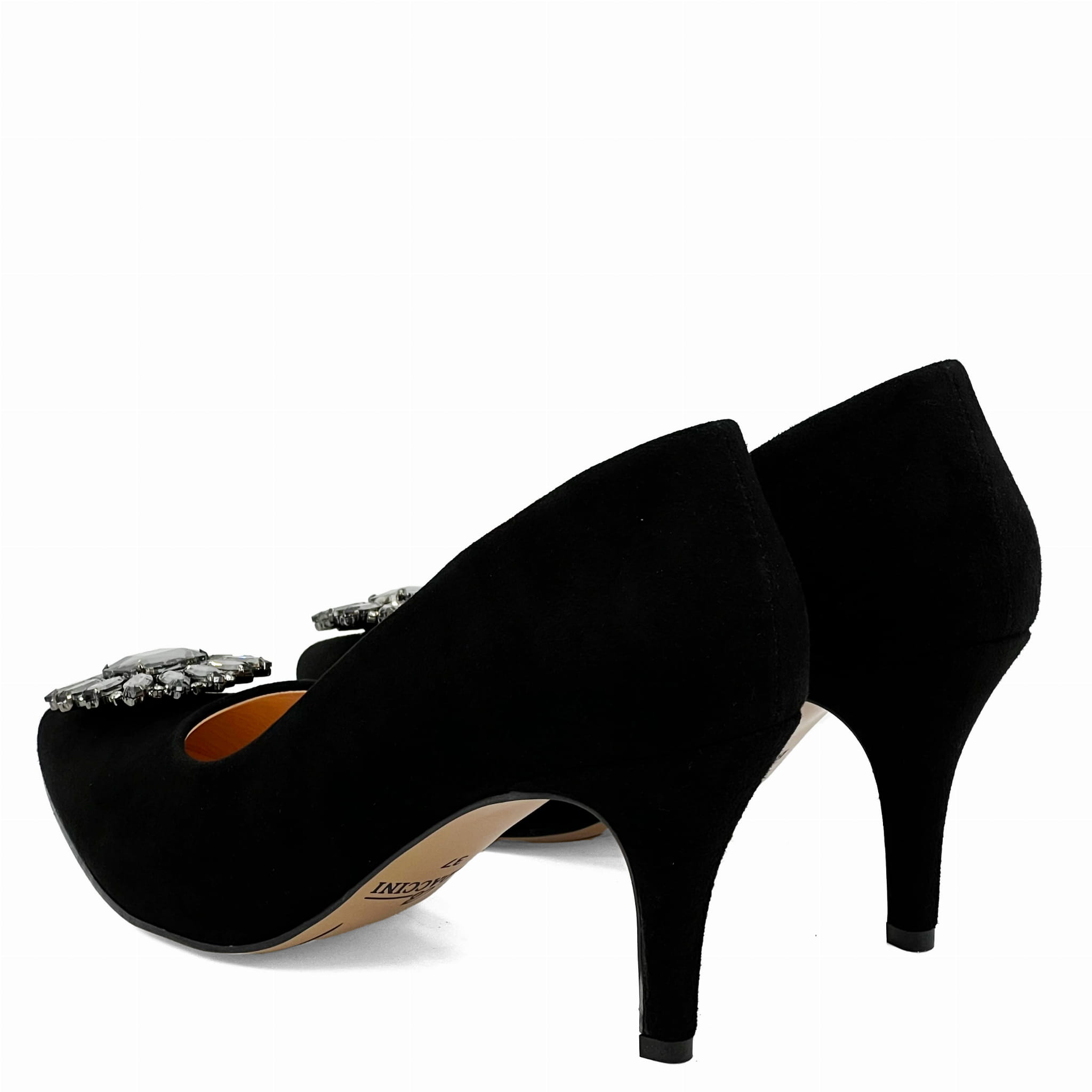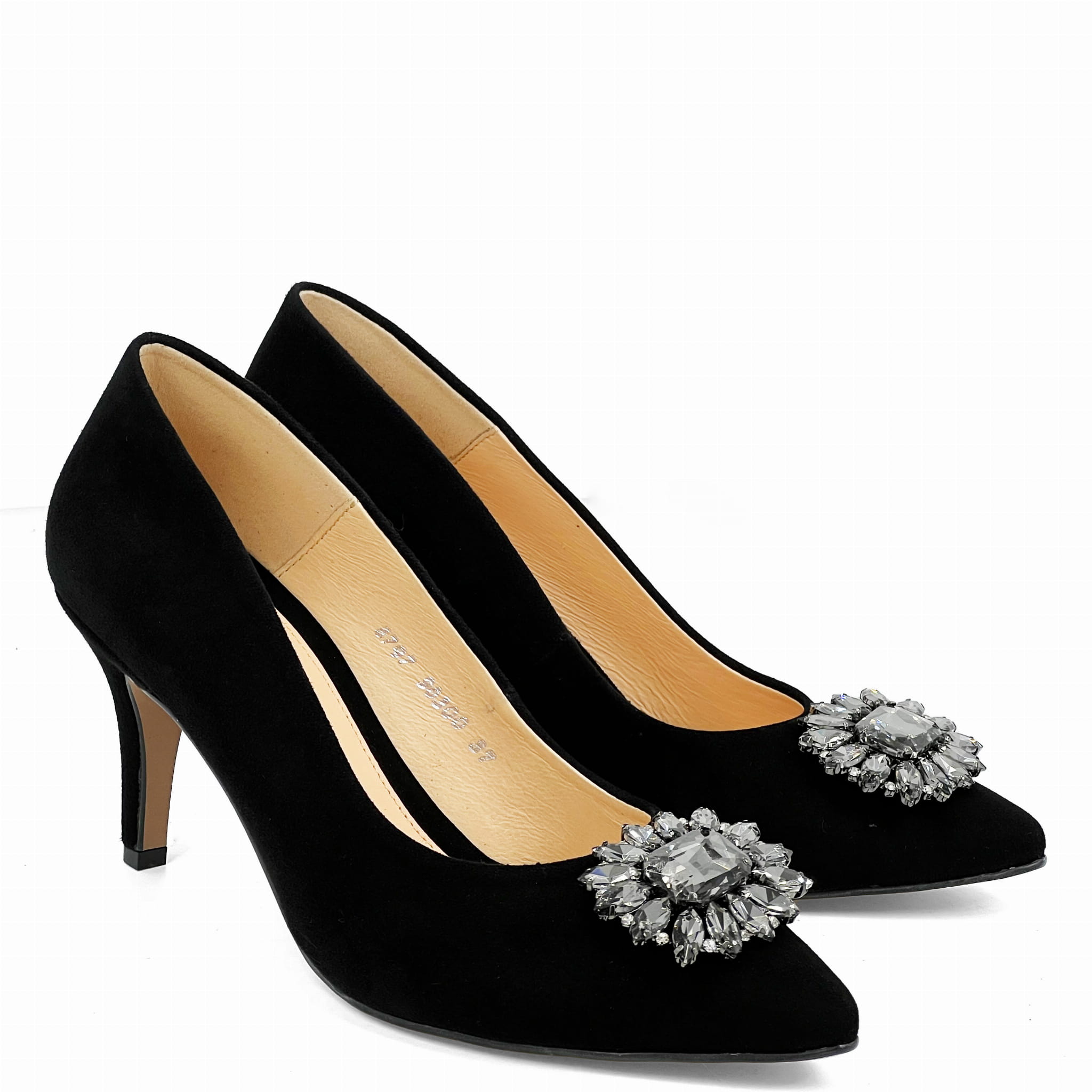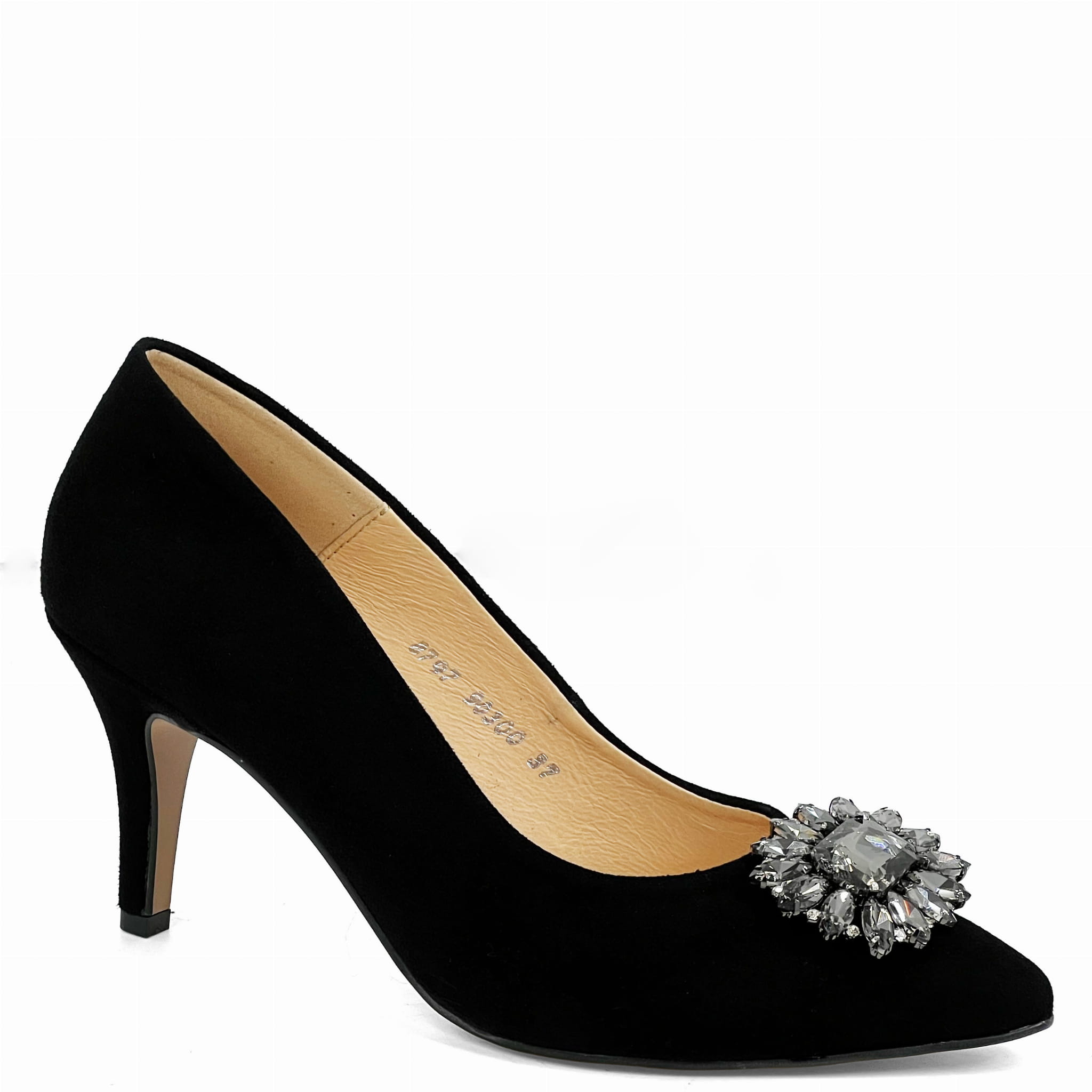 Czarne zamszowe szpilki na niskim obcasie z ozdobą Baldaccini 9030-81