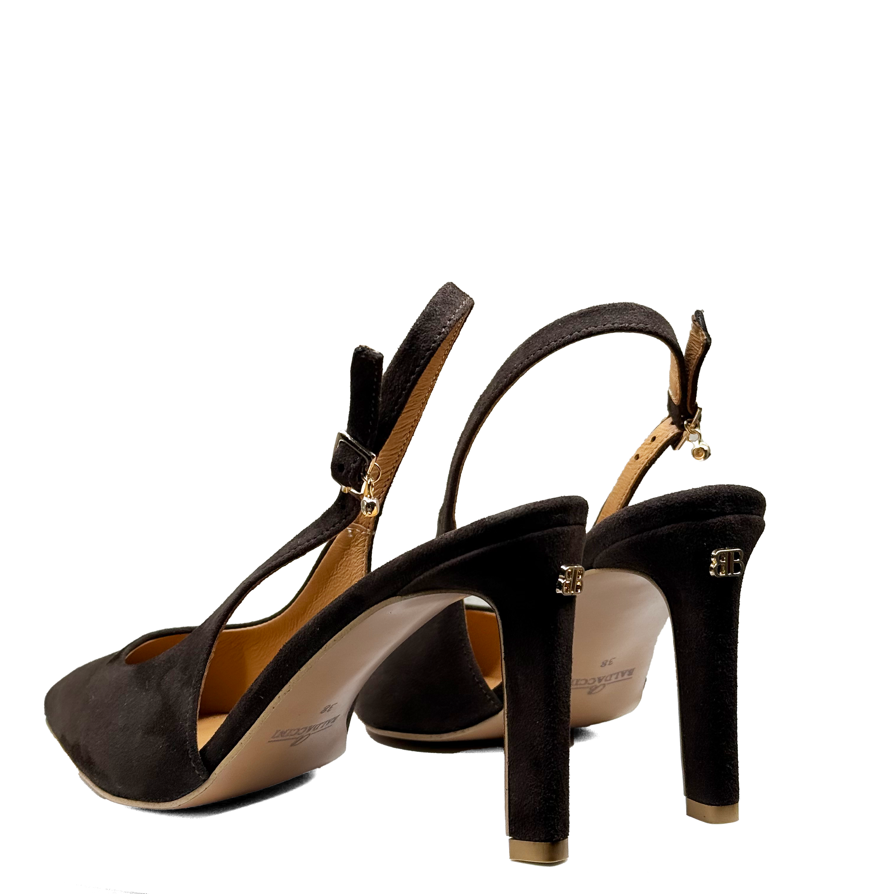 Czekoladowe zamszowe czółenka z odkrytą piętą Baldaccini 20710 -67