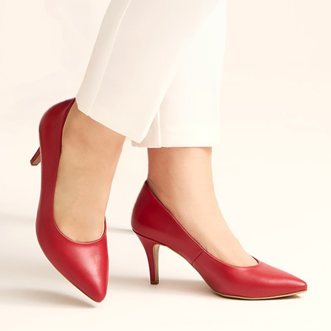 Czerwone czółenka na obcasie 7.5 cm typu kaczuszka – klasyczna elegancja z nutą kobiecości
