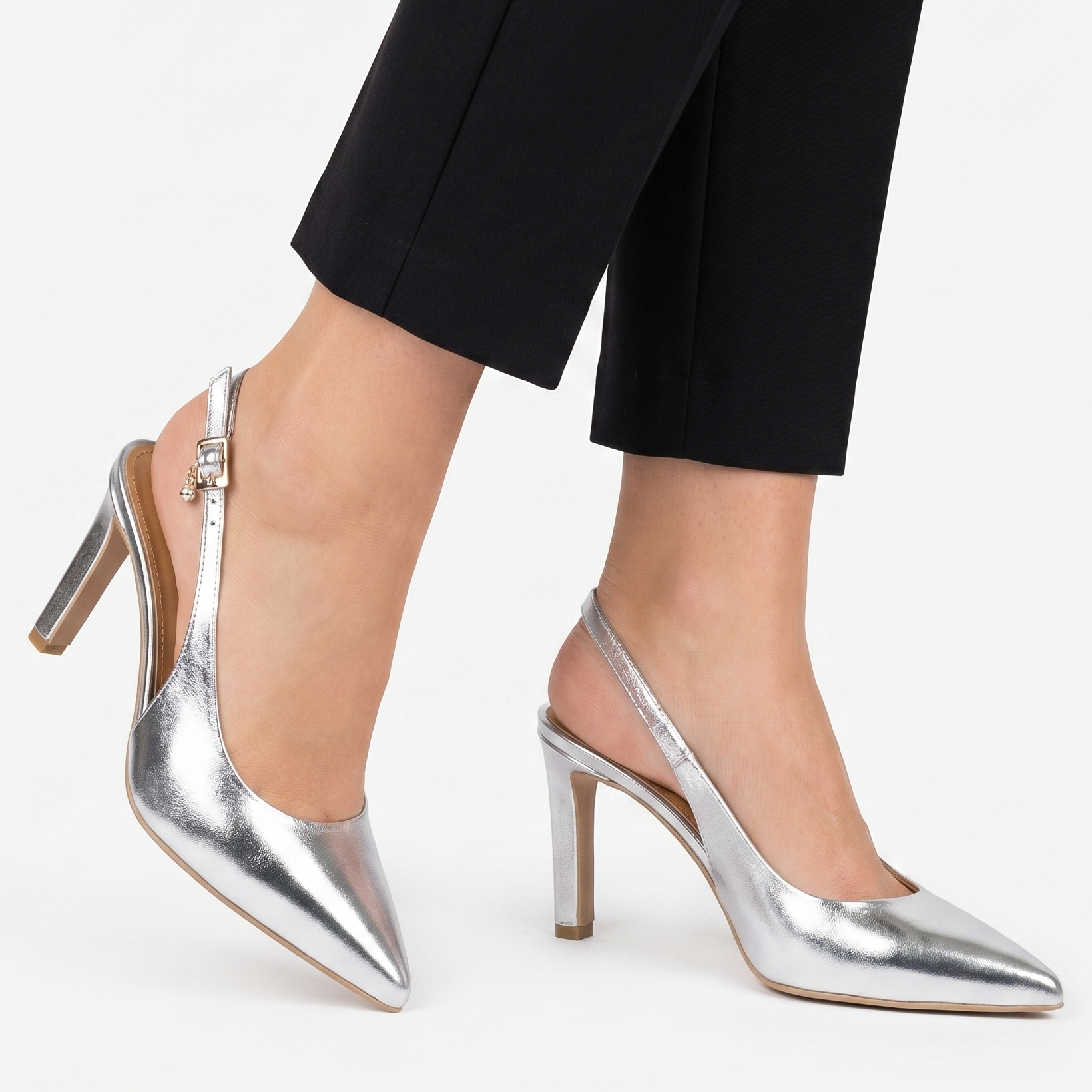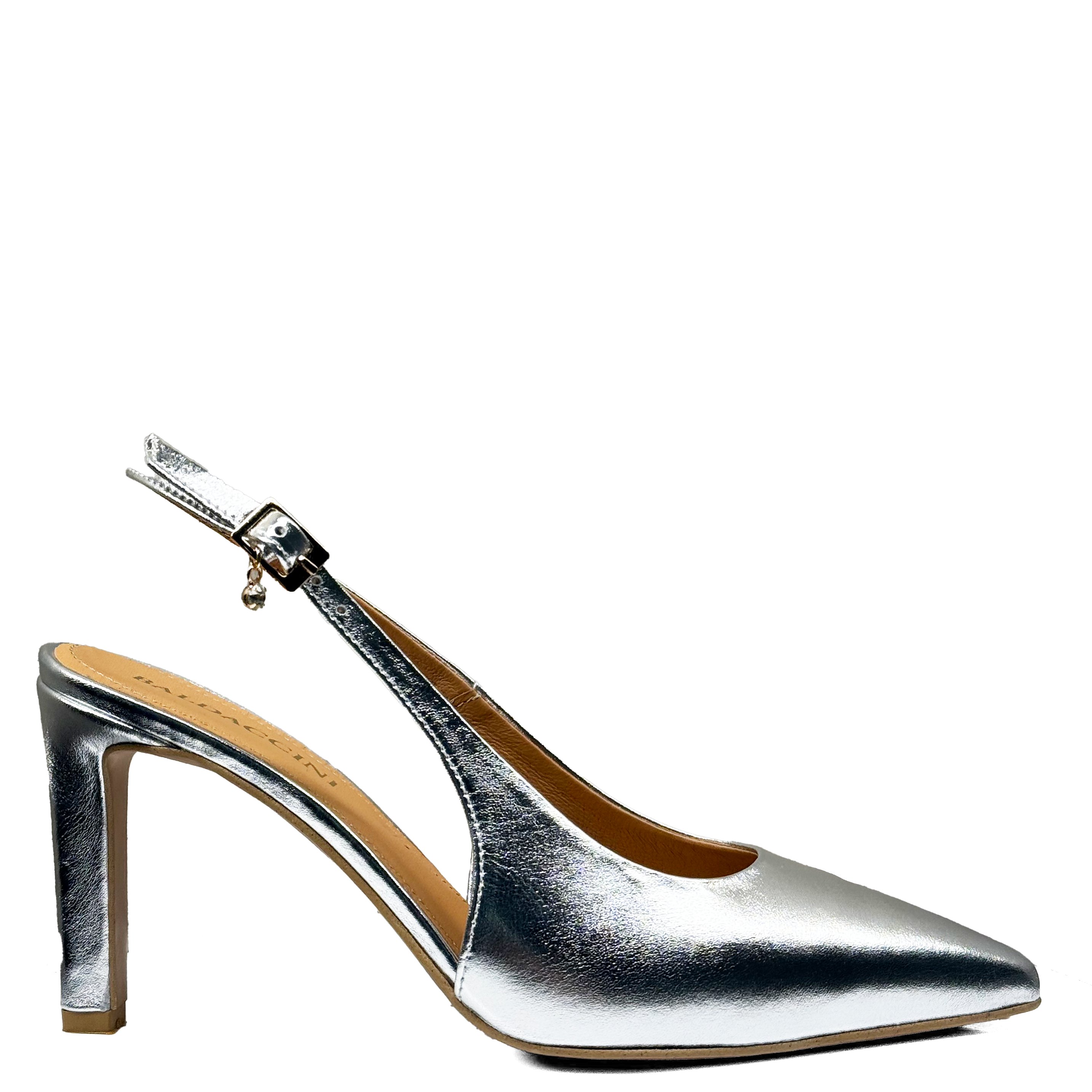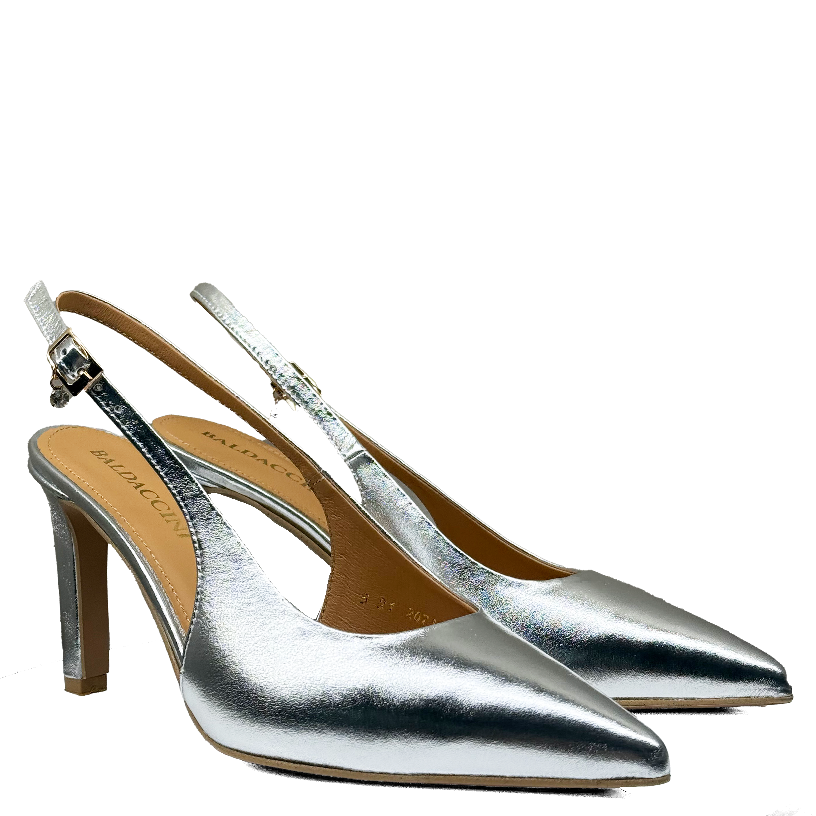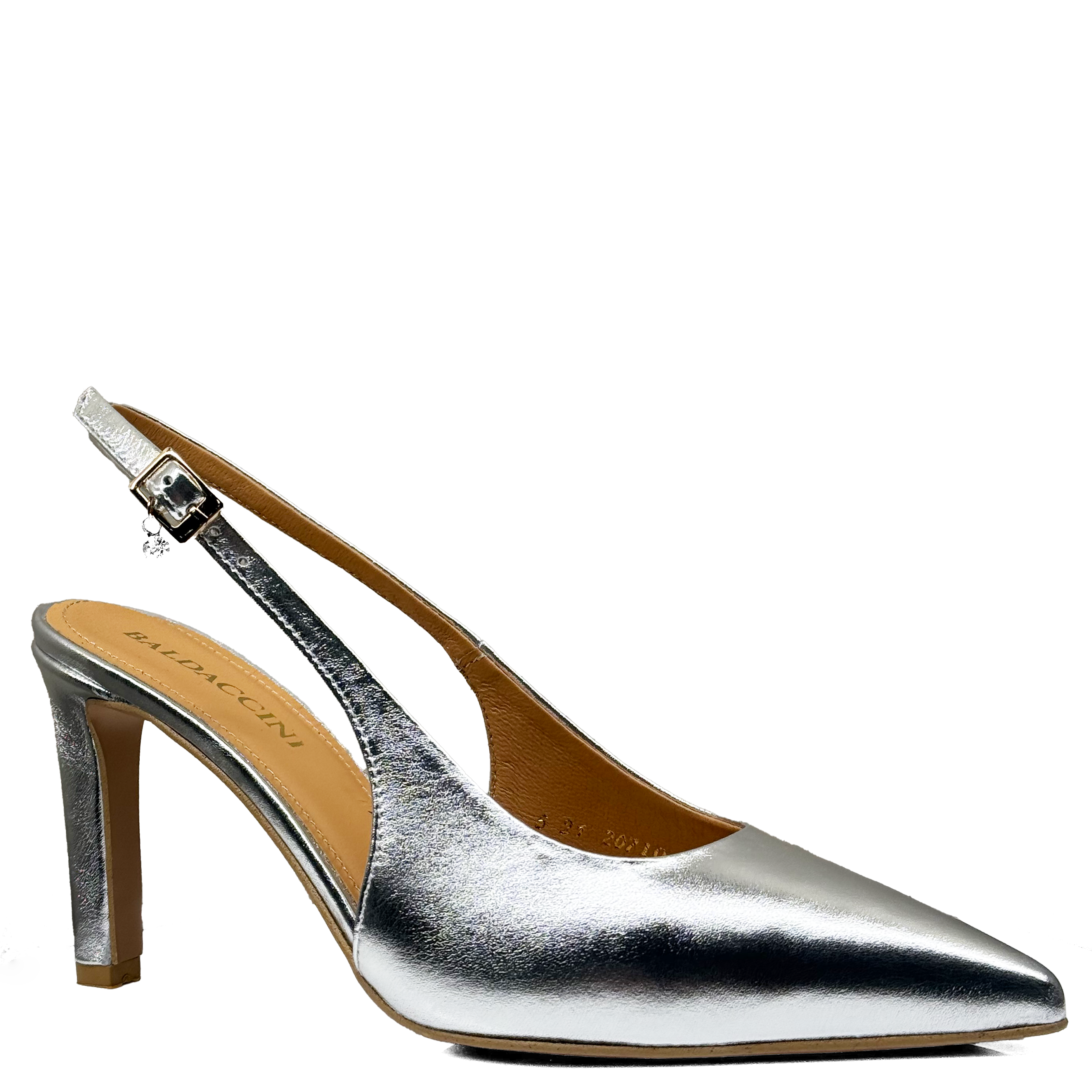 Srebrne skórzane czółenka z odkrytą piętą Baldaccini 20710 -11