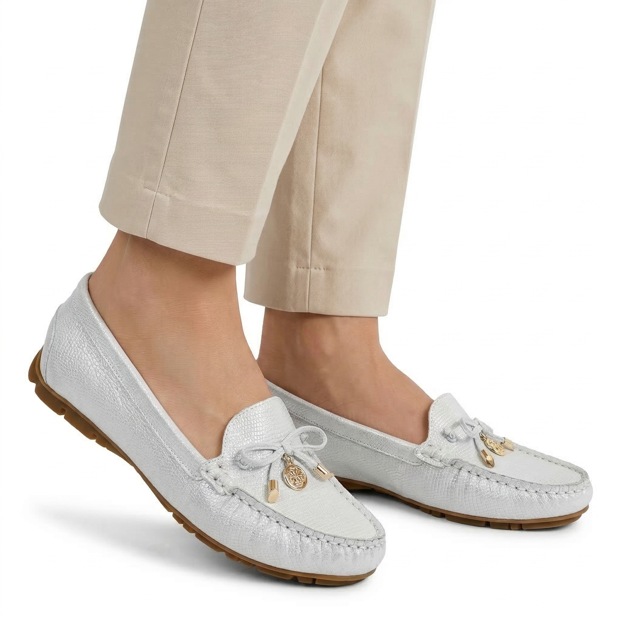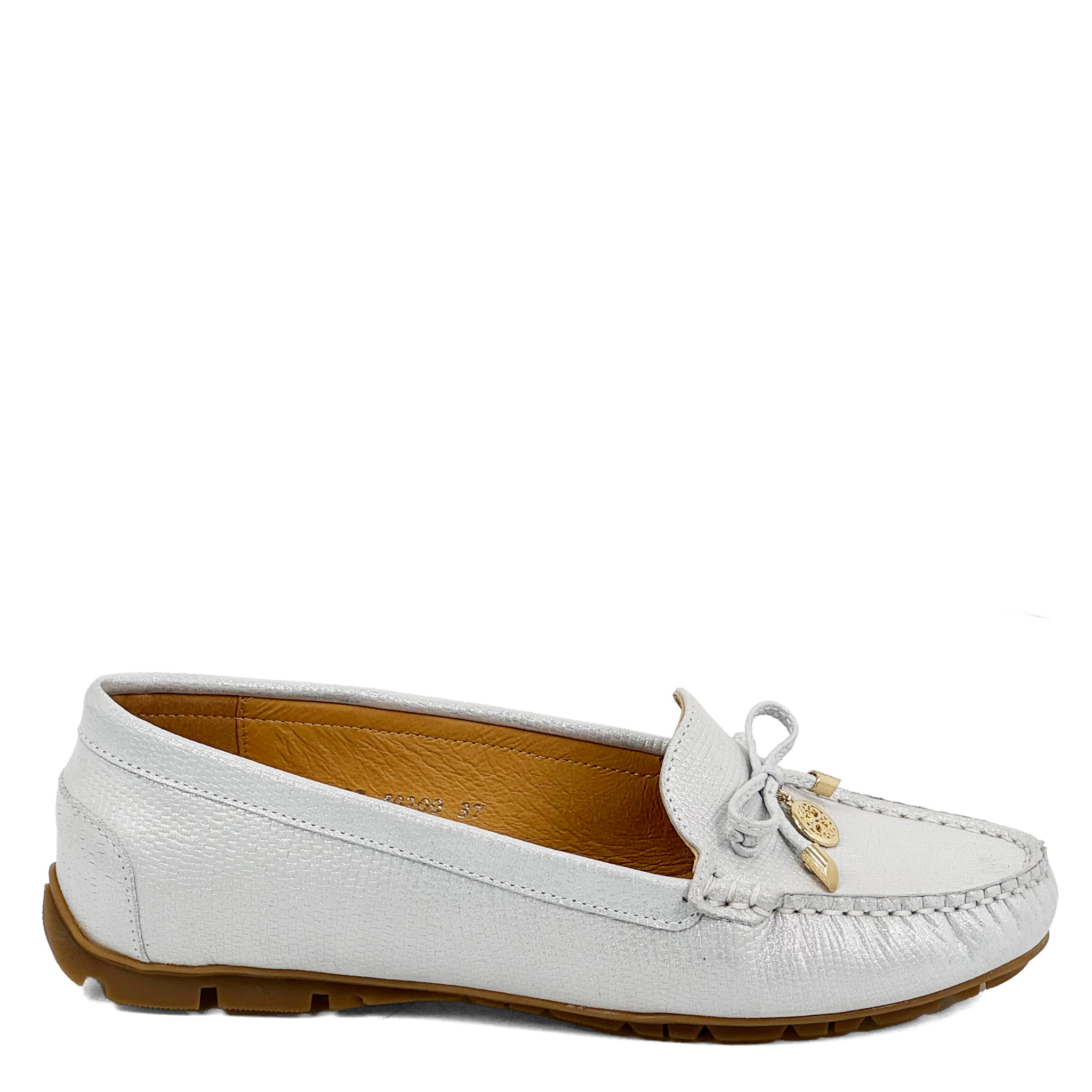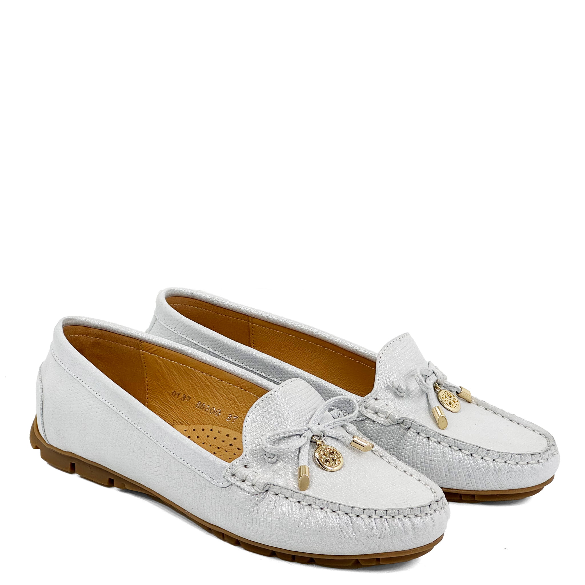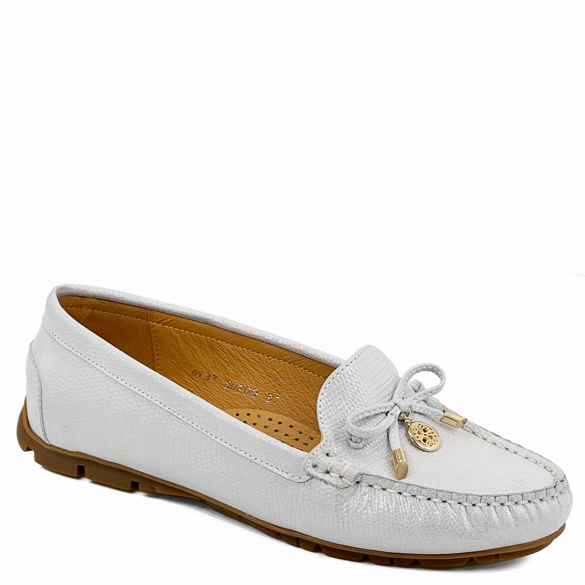 Srebrno -Białe mokasyny skóra naturalna Baldaccini 802000-R005